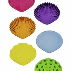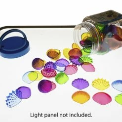 - 72 seashell-shaped pieces in 6 different transparent colors (red, yellow, orange, green, blue and purple) and 6 different textures