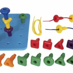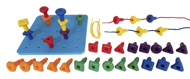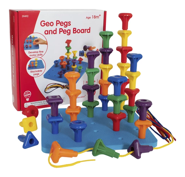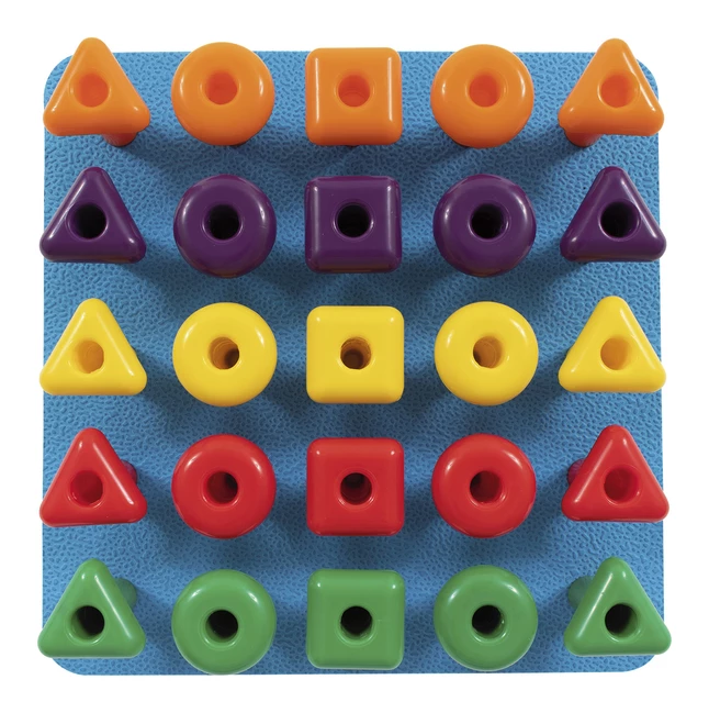 - The pegs feature 3 shapes: square, circle and triangle