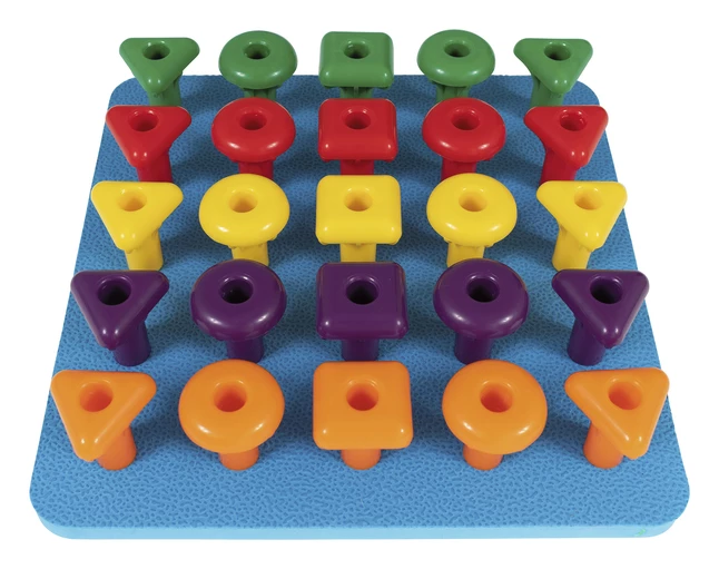 - The durable peg board features 25 holes and is made from closed cell foam