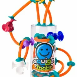 The latest revolution in suction construction fun! these new Squigz bend, twist and loop every which way into hours of creative play. Make your structures more wobbly than ever. Includes 12 Toobz, 6 classic Squigz. Ages 3 years and up.