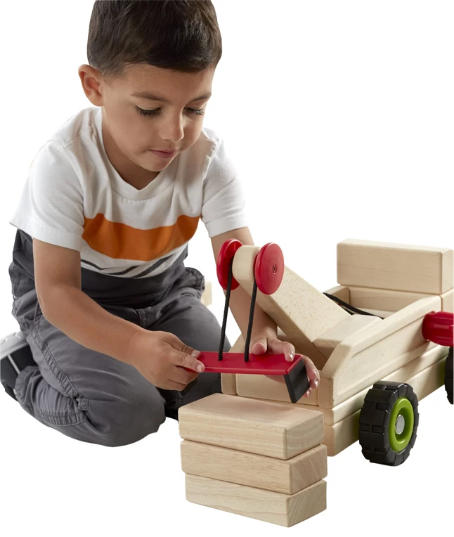 When a child rotates the handles in the front of the truck bed, the attached Unit Blocks (sold separately) can be raised and then lowered
