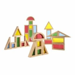 Guidecraft Rainbow Blocks developed for ages 2 years and up feature transparent acrylic windows in red, blue, yellow and green. Smooth blocks made with hardwood are sized to complement classic block is sold as 30 per set.