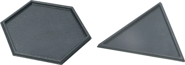- Hexagonal and triangular shaped trays allow for creative options and different angles for fitting in assorted blocks