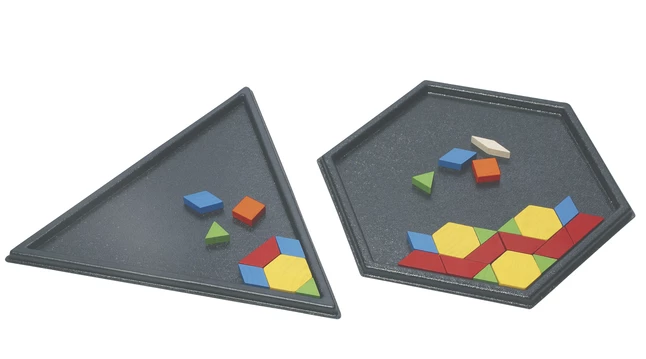- Pattern block trays offer fun recreation and educational activities for STEM and STEAM centers, schools, kid-friendly offices, and home