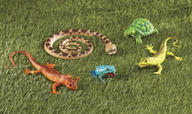 - Toy animals inspired by popular reptiles and amphibians offer a fun dramatic play set and educational aid for teaching about different wildlife