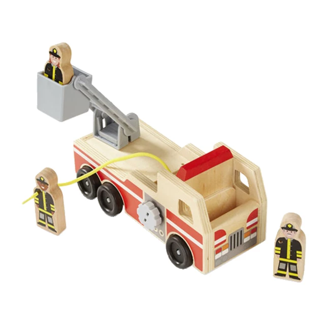 This play set includes a wooden fire truck with roll-up hose and lifting bucket ladder, plus three solid-wood play figures who can ride in the front, stand in the bucket, and even hold the hose. Durable wooden construction and classic styling mean this sturdy play set will be rescuing playtimes for years to come!