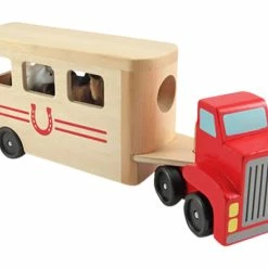 This durable wooden vehicle is ready to carry horses in style Realistic pull-down ramp allows horses to be loaded and unloaded easily Horse trailer links easily to the truck’s wooden “hitch” Encourages imaginative play and fine motor skills