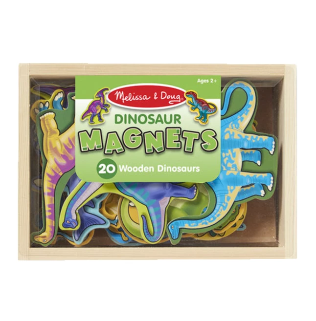 Twenty magnetic dinosaurs eager to play in the twenty-first century! Bright colors add excitement to this dino collection contained in a convenient wooden case.