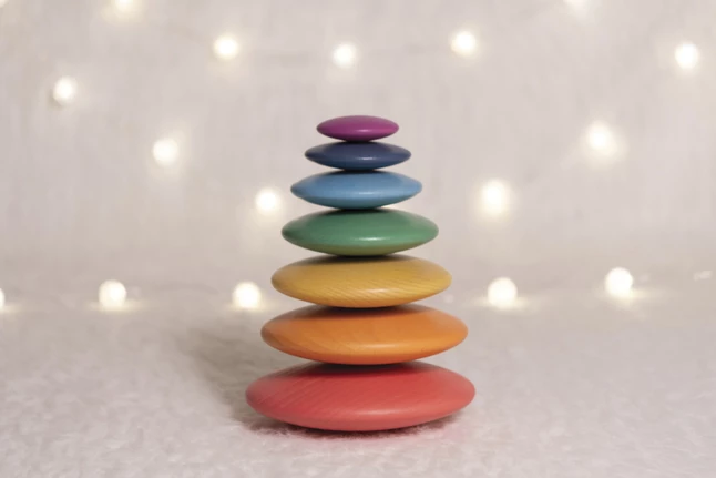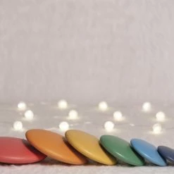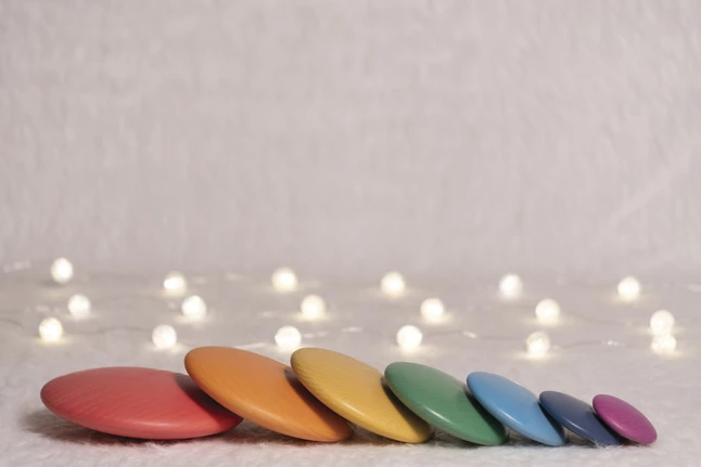 - Rainbow Buttons feature the natural grain of the Beech wood, which has been colored with a muted paint
